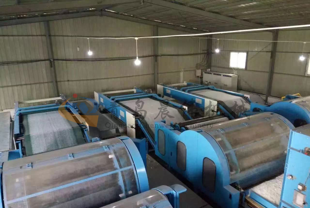 該生產(chǎn)線用于生產(chǎn)高檔家用紡織材料仿絲棉, 仿絲棉廣泛應用于服裝、床上用品、家具等。根據(jù)客戶要求可分四機頭、六機頭、七機頭等。機頭越多,產(chǎn)量越高。