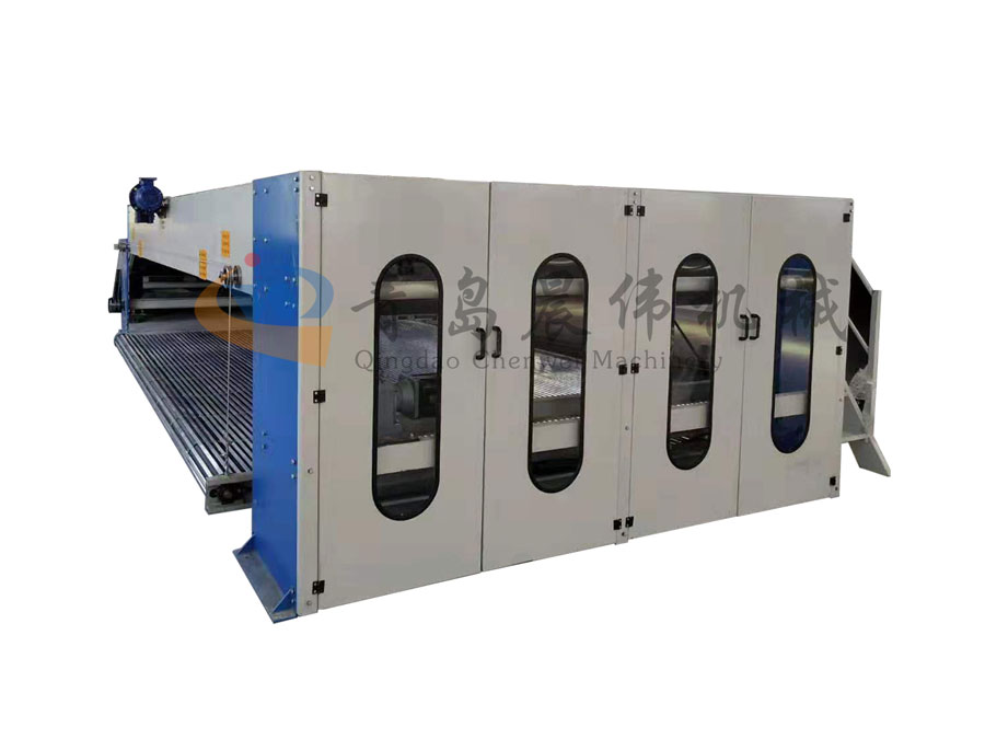 4.夾持式防靜電喂入簾,往復(fù)換向運(yùn)轉(zhuǎn)平穩(wěn),纖網(wǎng)厚薄均勻,輸出簾升降調(diào)節(jié)方便。